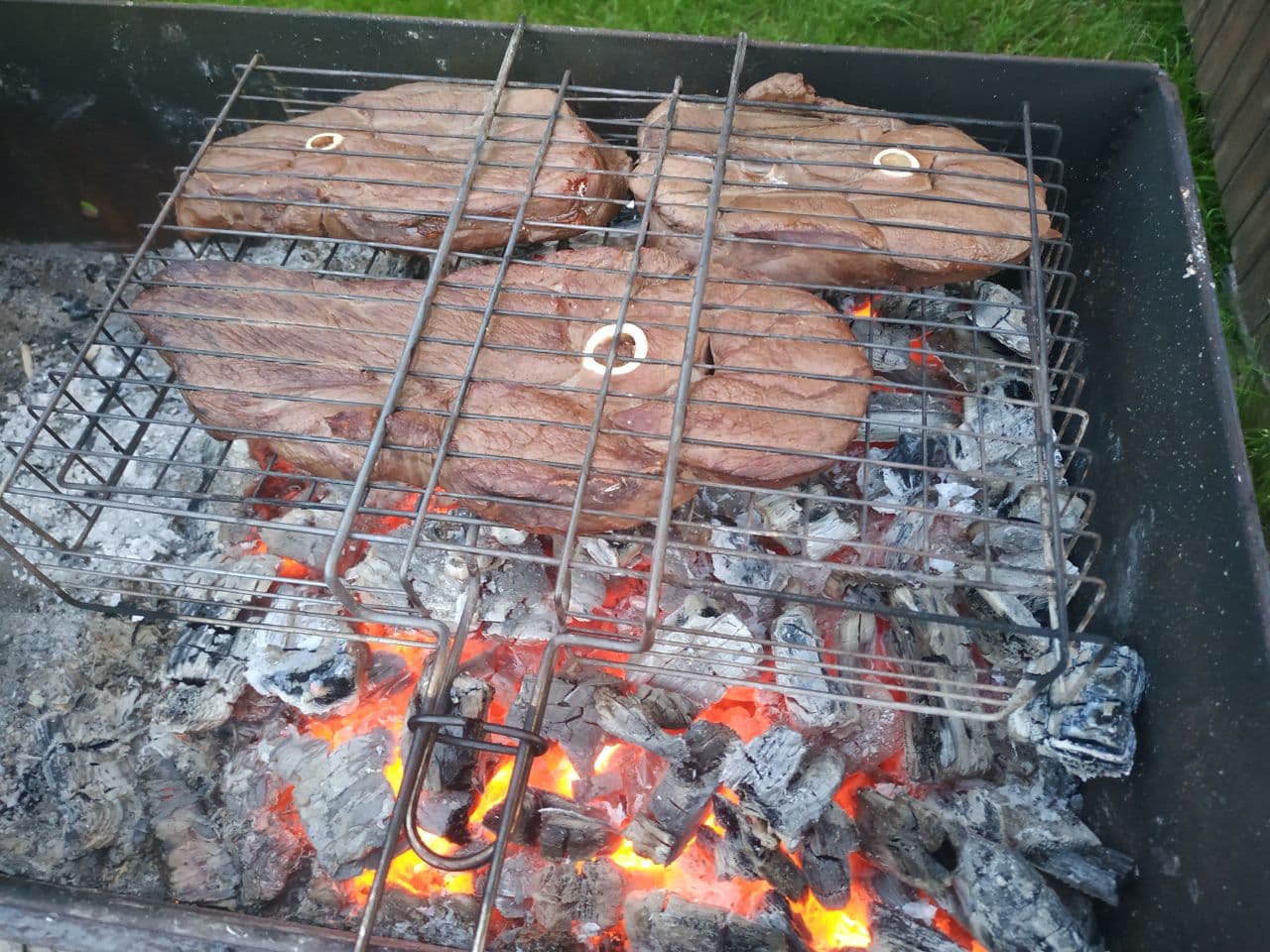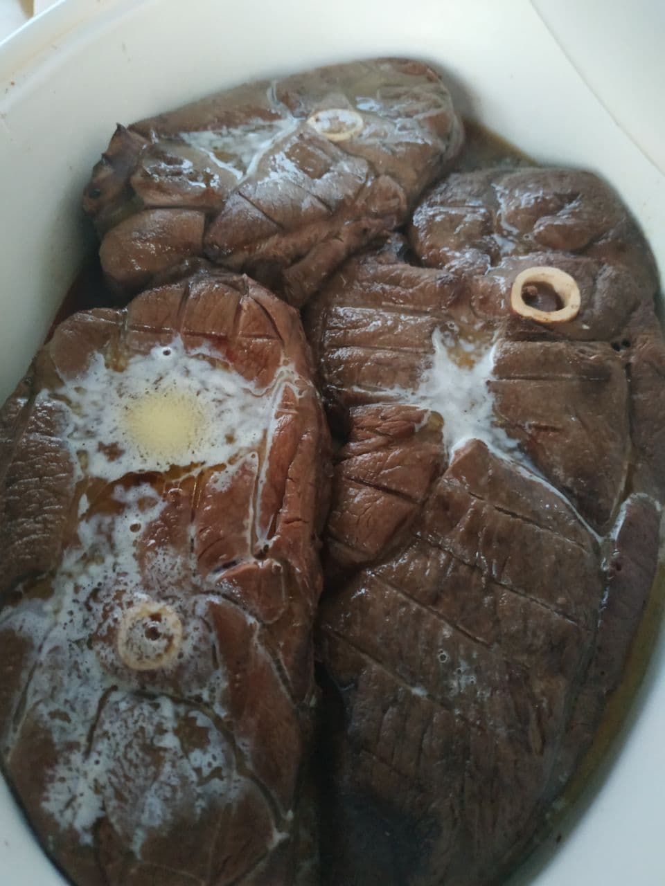 Стейк из окорока северного оленя на кости понравится всем любителям мясной кулинарии. Достаточно жесткое мясо, напоминающее говядину, при правильной кулинарной обработке приобретает нежность и мягкость. Для этого куски оленины отбивают, выдерживают в маринаде на основе оливкового масла. Для придания мясу сочности его перед обжариванием нашпиговывают кусочками свиного шпика. Особенно вкусными получатся такие стейки, запеченные на углях. Низкокалорийное мясо, имеющее сбалансированный состав белков-жиров-углеводов полезно при коррекции веса, спортивных, восстановительных диетах.