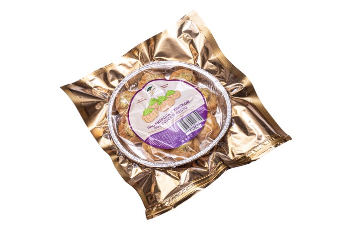 Особую пикантность профитролям придаёт песто — итальянский соус на оливковом масле, пармезане, базилике и орехах. Деликатес упакован в формочке для запекания. Способ приготовления: вскрыть упаковку, вытащить тарелку, разогреть в духовке в течение 8-12 минут при температуре 200 градусов до момента закипания масла.