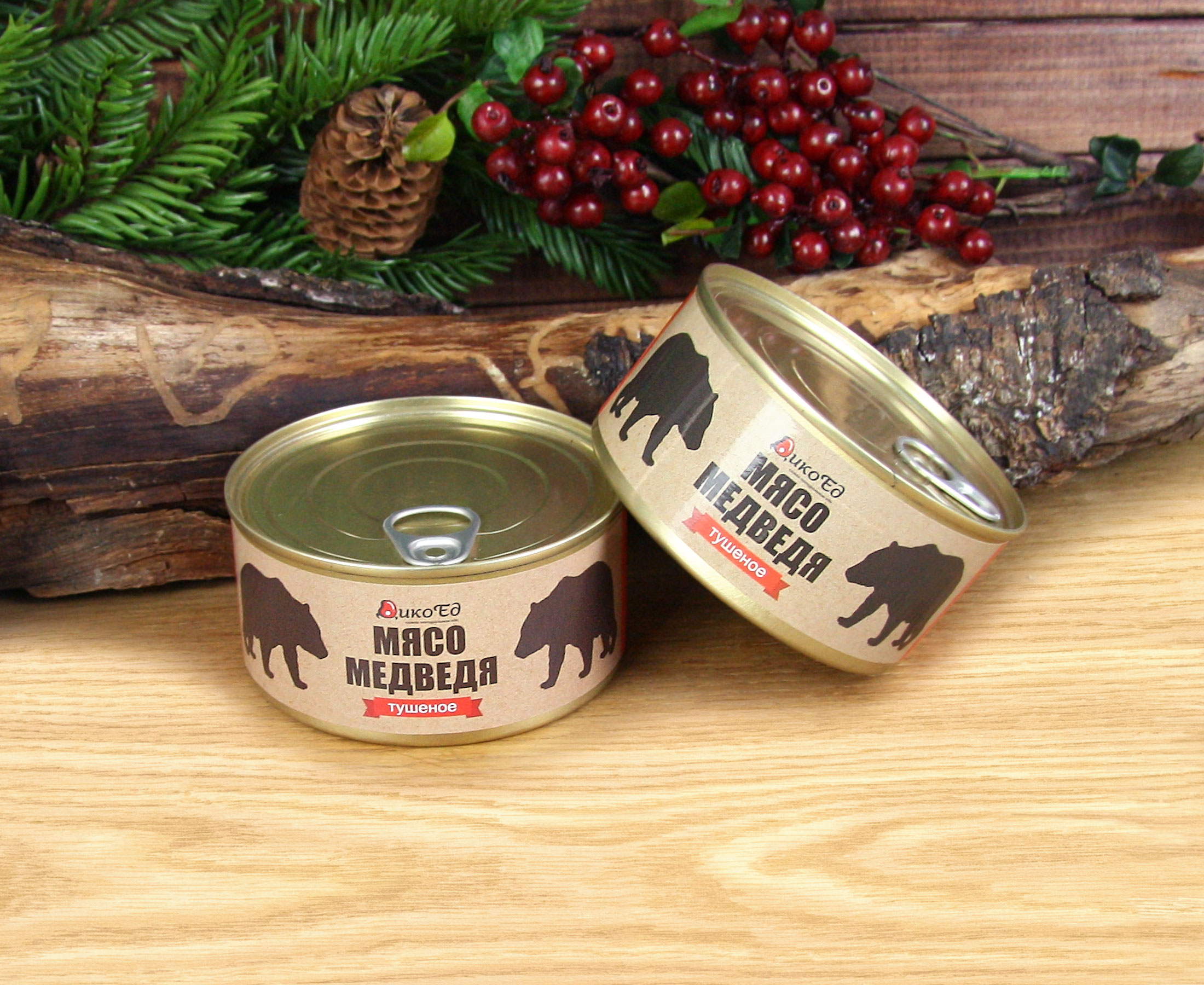 Тушеное мясо медведя в металлической банке представляет собой деликатес, который можно употреблять как в холодном виде (например, со свежим хлебом), так и в разогретом (с картофелем, макаронами, крупами и овощами). В состав продукта входит медвежатина, репчатый лук, соль, лавровый лист, черный и душистый перец. Этот продукт отличается великолепным вкусом и полезными качествами, так как содержит необходимые организму минеральные вещества, витамины группы В, а также калий, селен, медь, цинк, натрий, фосфор и железо.