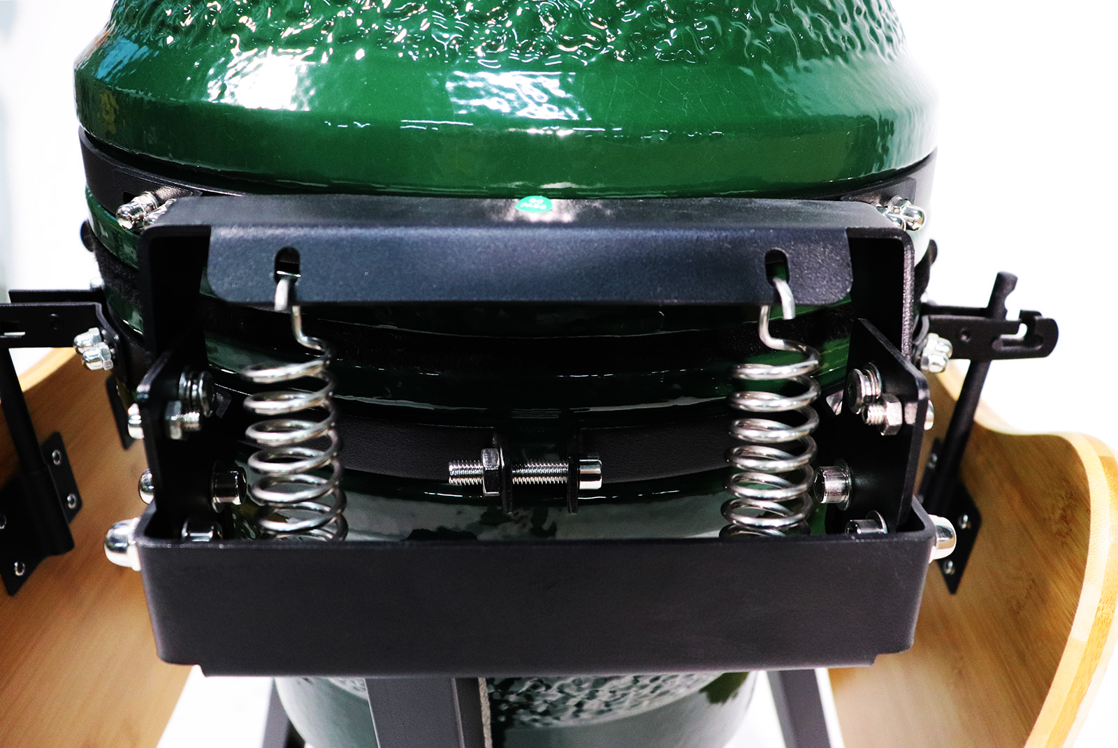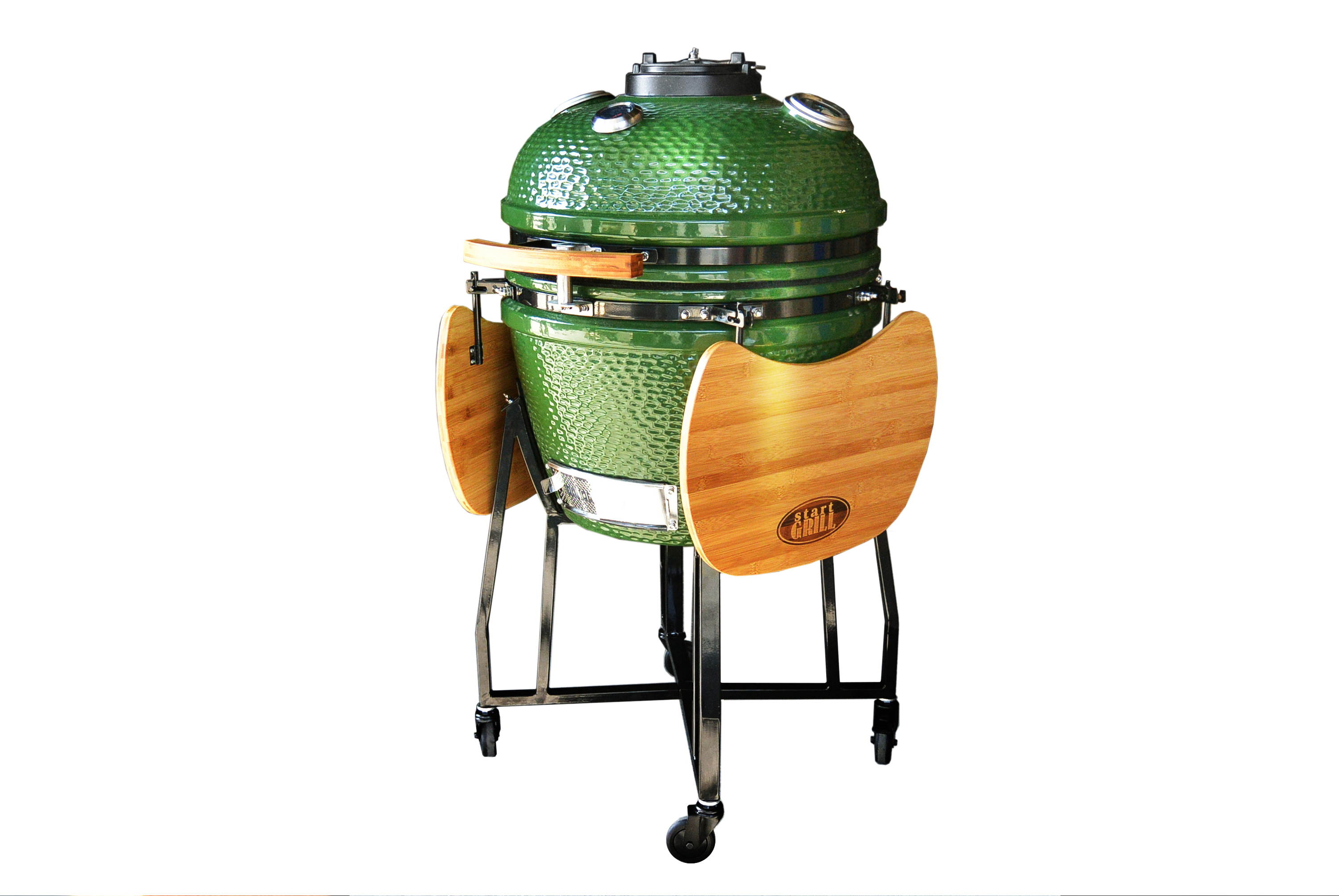 Важной составляющей правильного функционирования гриля является хорошая циркуляция воздуха. Отверстие в нижней части котла данной модели способствует поступлению кислорода в систему. Контролировать поток воздуха, возгорания углей и, соответственно, силу жара позволяет удобная заслонка. Прекрасным дополнением является и удобное окошко в корпусе, через которое можно безопасно наблюдать процесс приготовления без необходимости открывать крышку и следить за состоянием продукта с потерей температурного режима. Аппарат средних размеров: диаметр – 570 миллиметров, высота корпуса – 675 миллиметров, диаметр жаровни – 495 миллиметров. Стенки керамические жаропрочные с большим сроком службы.