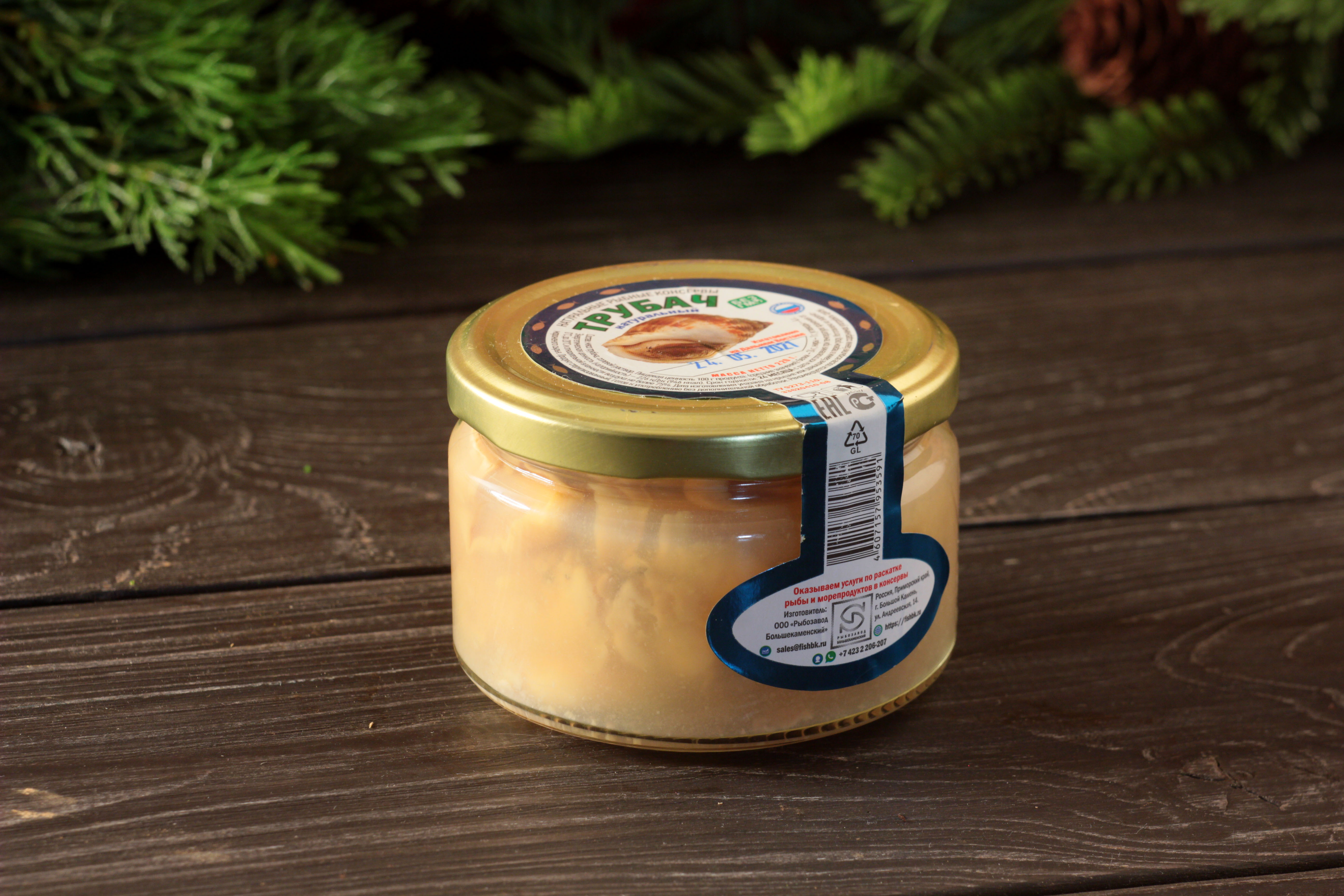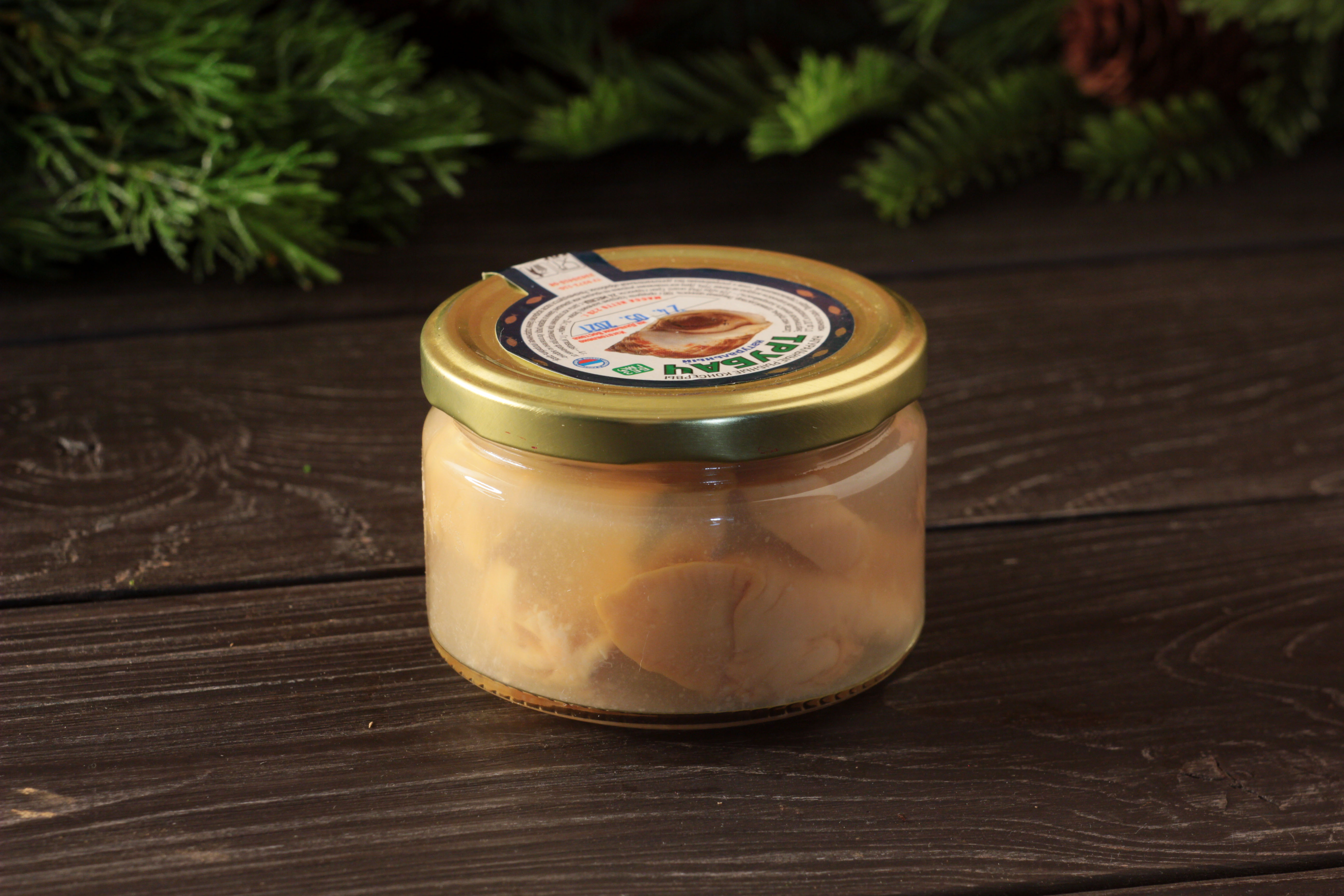 Трубач натуральный в солевом растворе – вкусный и полезный продукт. В его составе находятся полезные минеральные вещества и витамины. Продукт включен в список питания для спортсменов за счет большого количества белка.