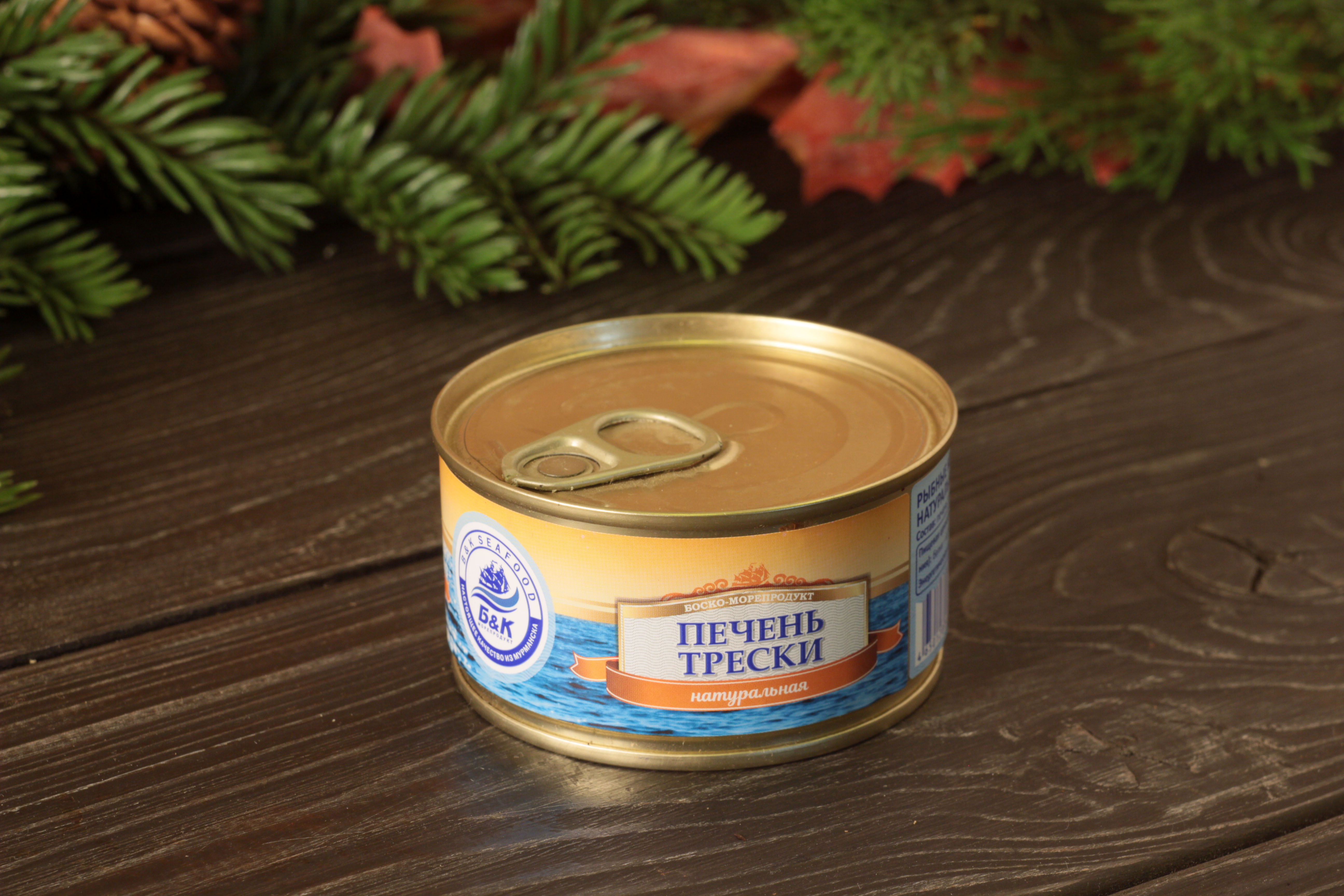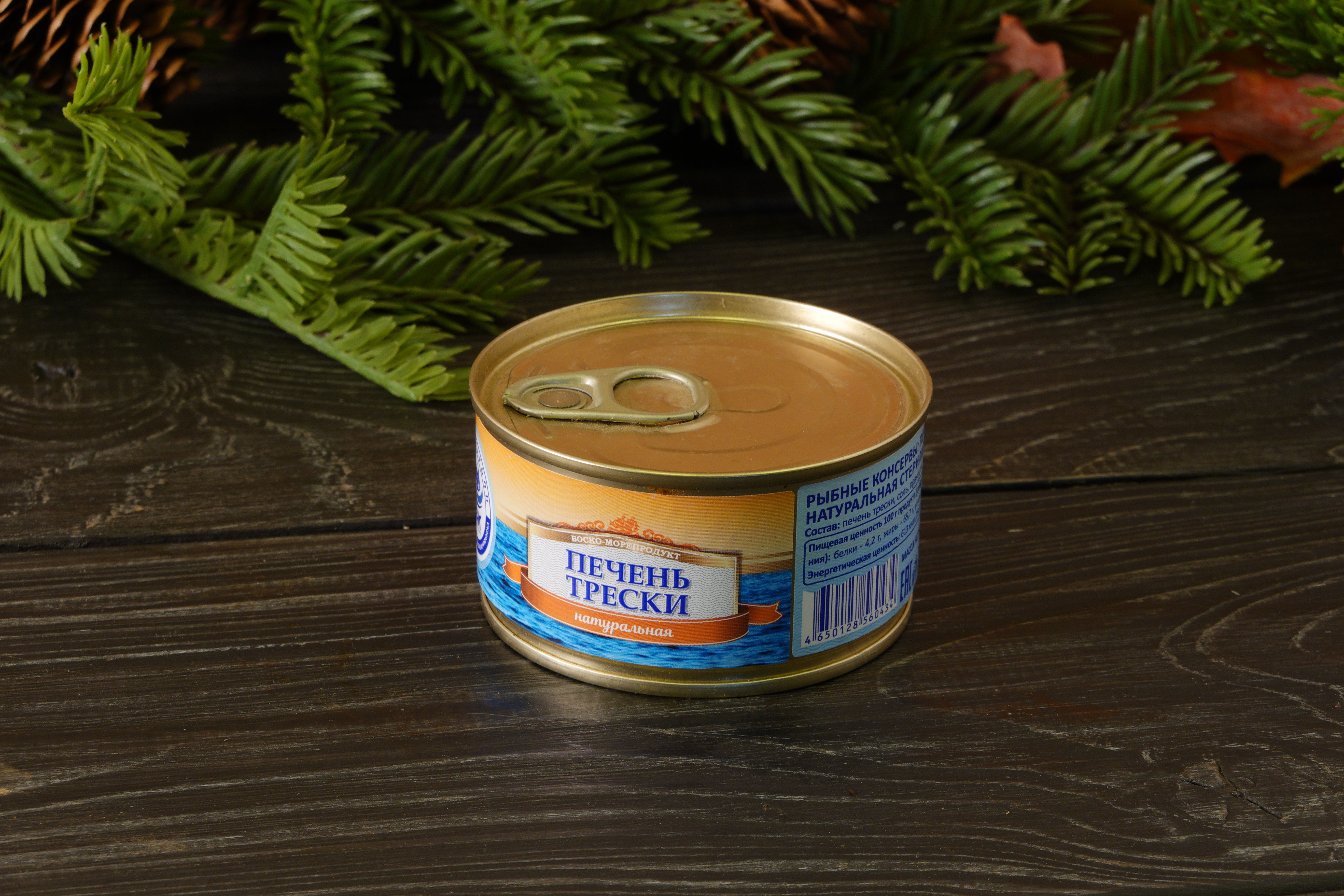 Печень трески натуральная–диетический продукт, лакомство для настоящих гурманов. Его изготовили из лаврового листа, соли, перца, печени трески. Продукция упакована в жестяную банку, с удобным ключом, который облегчает ее открытие.