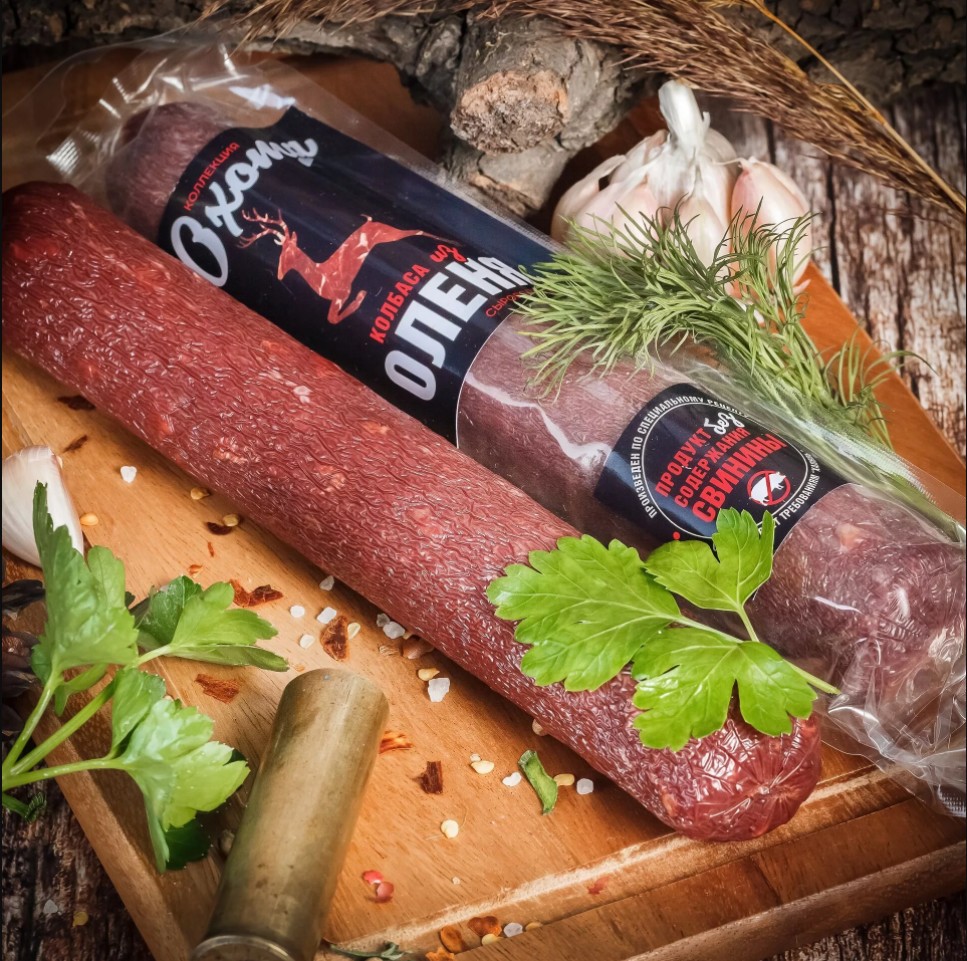 Сыровяленая колбаса из оленя – продукция премиум-класса. Ее можно преподнести в качестве подарка. Оленина считается экологически чистым мясом, богатым витаминами и минералами, которые сохраняются во время вяления.