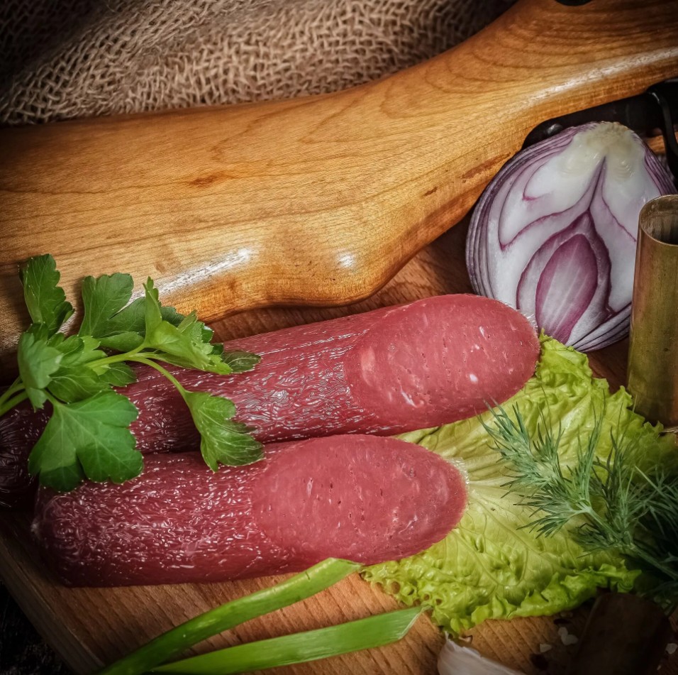Сыровяленая колбаса из зайца – продукция премиум-класса. Она обладает не только изумительным и нежным вкусом, но и полезными качествами дичи, сохранившимися после процесса вяления. Зайчатина – это источник аминокислот, богата витаминами В12.