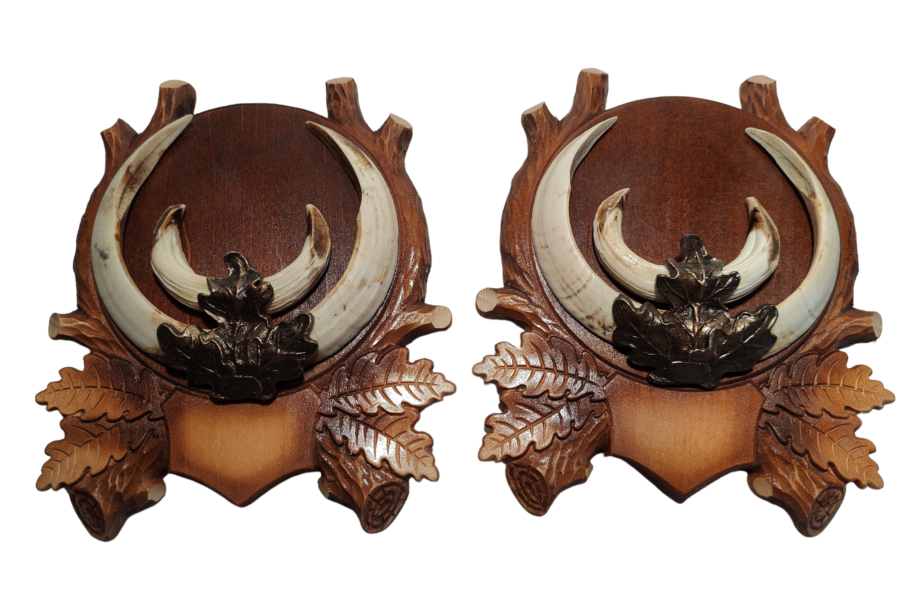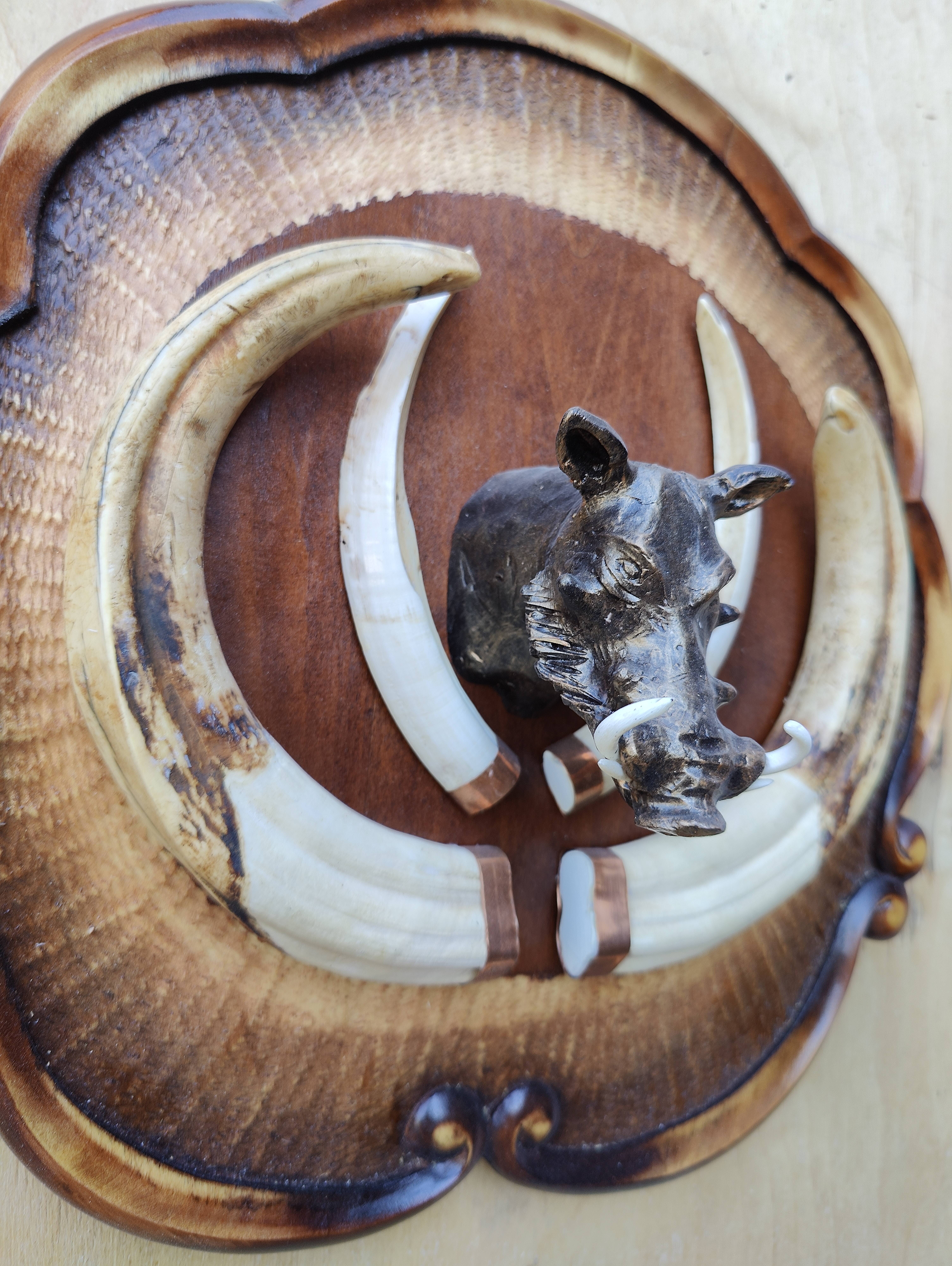 Клыки кабана на резном медальоне - это уникальное изделие, которое обладает высоким качеством и оригинальным дизайном. Каждый клык кабана имеет свою уникальную форму и текстуру, что делает каждый медальон уникальным. Этот товар отлично подойдет для мужчин, которые ценят необычные аксессуары и предметы силы. Кабан (лат. Sus scrofa) символизирует силу, мужество и защиту, поэтому такой медальон будет отличным подарком для мужчин на 23 февраля, день рождения или любой другой праздник. Подарите этот медальон и подчеркните индивидуальность и стиль своего близкого человека.